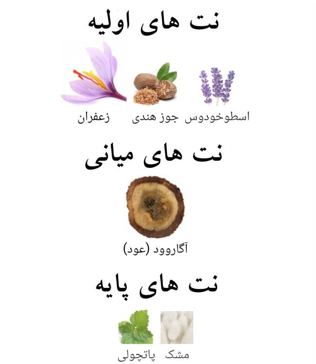 عود اصل: استفاده از عود اصل در این عطر، به آن عمق و پیچیدگی خاصی بخشیده است.